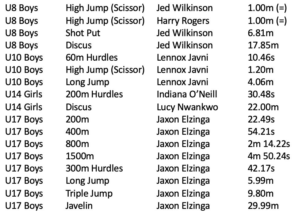 | U9B | High Jump Scissors | Jed Wilkinson | 1.10m | 24-01-25 |